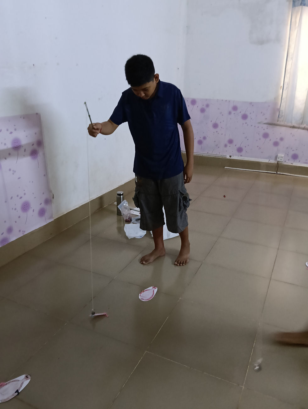 理科のベテラン・じゅんいち先生による磁石の特別授業!中学2年生の二人も、その楽しさに目を輝かせていました。授業の後には、生徒たちが先生へのお返しとしてクメール語講座を開き、互いに教え合う温かい時間となりました。 じゅんいち先生が、磁石が引き合ったり反発したりする”「磁石の原理」を分かりやすく解説する実験”を披露してくださいました。